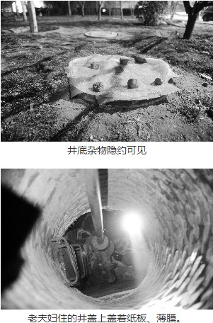 记者按网友提供的线索,在丽都广场南门西侧的路边草坪找到了这口井,井盖上盖着纸板、薄膜,并用石头压住,井盖正中间写着一个“暖”字。不远处的铁栅栏上,搭着一床蓝色被子,还有一些袜子、泡沫纸等物品。“这下面住着一个老头和一个老太太,这些东西就是他们晾的。”在附近打扫落叶的张先生告诉记者,两位老人近70岁,在此居住已有五六年,白天外出乞讨,晚上回来居住。“听说他们还有两个儿子,前段时间有个儿子来过,在附近卖伞,后来就没见到过,估计回老家了。”
