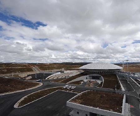 总体建筑规模8796平方米。最为吸引人眼球的是候机楼,外观为碟形三层建筑,像及一架“飞碟”准备飞向蓝天。该机场已于去年完成校飞和试飞,据悉该机场将在本月首航。通航后稻城机场与云南、攀枝花的支线机场形成香格里拉环线,共享藏区文化旅游的品牌和资源,开启四川省与云南、西藏等周边省份旅游的深度合作,共同推动区域合作上升为国家层面的旅游发展战略。