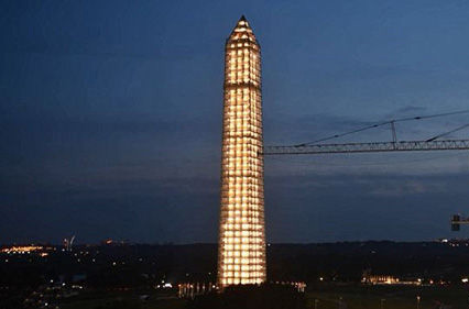 2011年8月23日,美国华盛顿附近发生5.8级地震,华盛顿纪念塔也出现些微小裂痕,此后纪念塔停止向游人开放。据英国《每日邮报》报道,因维修关闭的华盛顿塔将每晚点亮488盏灯,弥补游客不能登顶的遗憾,重现这座大理石方尖碑的炫彩形象。