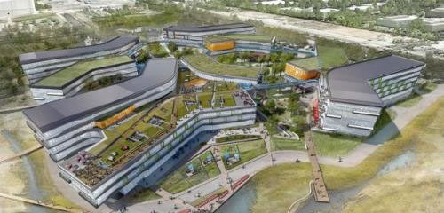 谷歌的“湾景”办公园区,位于美国宇航局阿莫斯研究中心的土地(谷歌租赁了土地),谷歌计划在这里建设大约93万平方米的办公楼。不过,对于建筑设计,谷歌并不满意,计划进一步修改完善。