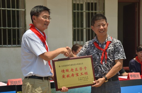 汶川地震的捐赠活动激发了维拓人对爱心事业的热情,开启了维拓教育捐助计划。多年来,公司相继捐资并免费设计了泰安市岱岳区木营村维拓希望小学、内蒙古四子王旗维拓希望小学、新疆乌鲁木齐水磨沟区维拓希望小学。2011年8月,公司成立了维拓爱心捐助站,为维拓希望小学的孩子们多次募集学具物资上百箱。如今,白塔畈乡凉井小学将是维拓人捐助的第四所希望小学。此次,维拓设计捐资30万元用于该校建设,且无偿为该小学提供全套设计图纸。另外,维拓的同事们还带来了维拓员工爱心捐助站所募集的学具物资,真切表达维拓全体员工的一份心意。
