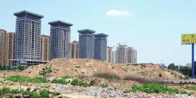 十多米高土台堆着建筑垃圾
