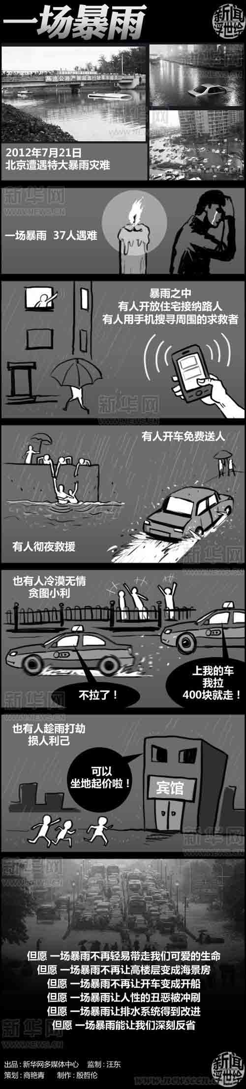7月21日,暴雨袭击北京城,此次降雨为60年来(1951年以来)最大。