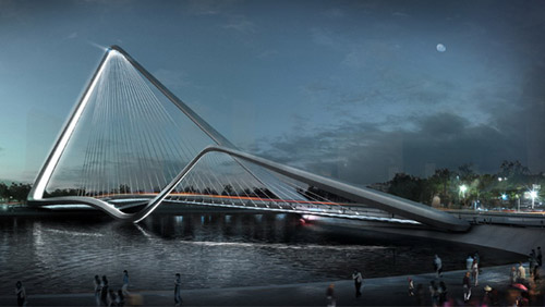 该桥身长300米,应邀参加此次国际设计竞赛的共有16家设计团队,其中包括AEDAS, ARUP以及Woods Bagot等国际知名建筑设计事务所。