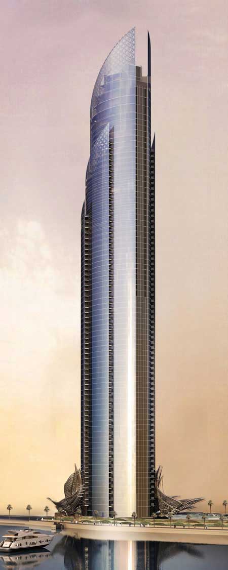 D1大厦有80层,是一座零售店兼住宅的混合用途项目,位于迪拜溪(Dubai Creek)的旁边。它将是“文化村”开发工程的标志性建筑之一,包含两个主要部分:玻璃大厦本身以及基座的一个优雅的木质顶棚幕帘。