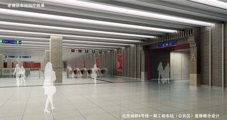 AA•都市建筑设计主持建筑师刘弘在即将开通的北京地铁6号线装修概念设计中提出了“京城连廊”的设计主题,力图在地铁车站这一高度功能化、日常化的公共空间中融入北京历史文化名城的记忆与变迁。