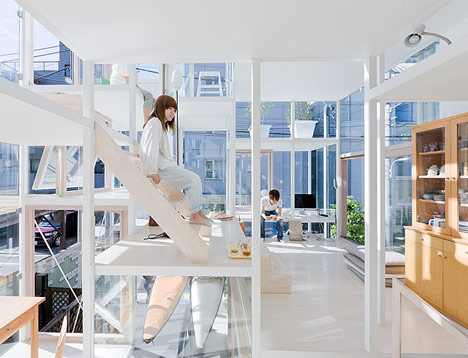 日本建筑设计师Sou Fujimoto在东京设计了一座几乎没有墙体的建筑——NA HOUSE。这座建筑外观看上去就像脚手架一样。