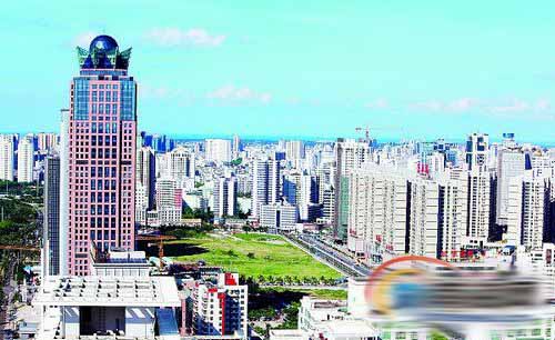 矗立在海口滨海大道的天邑国际大厦(左侧最高楼)高198米(图片来源:海南日报)