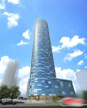 国际航运中心大厦项目位于青岛连云港路和敦化路交叉口东南角,项目建设单位——山东海洋发展有限公司于2011年2月24日通过拍卖取得青岛中央商务区项目地块。国际航运中心大厦主楼高度249.95米,总建筑面积16.06万平方米。项目采用美国一流建筑设计机构概念设计方案,主体建筑方案犹如“定海神针”,挺拔大气不失雍容端庄,通体蔚蓝的色调以及岿然傲立、波光粼粼的设计意象契合了大厦承载的海洋运输功能特征和发展愿景。该项目预计于2015年建成投入使用。