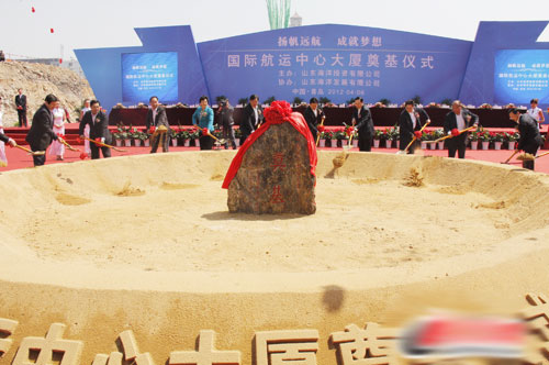 现代综合航运企业总部基地——国际航运中心大厦奠基仪式在青岛中央商务区举行。山东省委常委、青岛市委书记李群,中国船舶重工集团公司副总经理董强,省国资委主任谭成义,省交通运输厅厅长贾学英,青岛市人大常委会副主任吴淑玲,青岛市副市长徐振溪,青岛市政协副主席郄晋生等出席仪式。