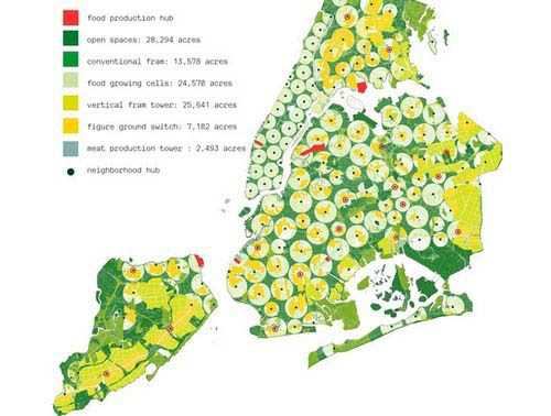 为更好应对全球城市人口,Terreform公司运用一种革新性的方式帮助纽约市应对这个全球性的问题。方案名称是纽约城市定态(NYCSS),使得纽约成为一个自给自足的完整系统,成倍地减少碳足迹。新的绿色方案基于NYCSS项目组收集包括城市供给、需求等的大量数据,得出纽约市将主要依赖城市农场的结论。