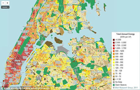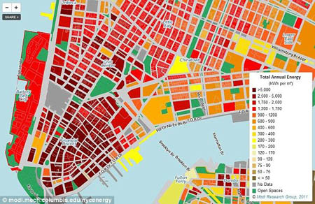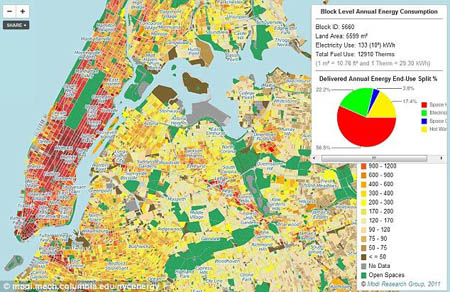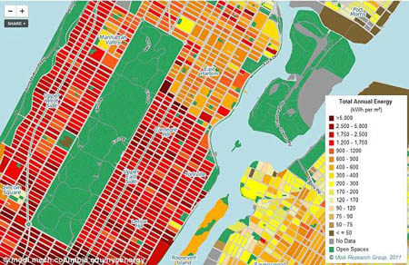 哥伦比亚大学工程学院(Columbia Engineering School)的研究团队希望这幅互动的地图能帮助人们确切地知道他们那栋楼相比其他建筑消耗了多少能源。