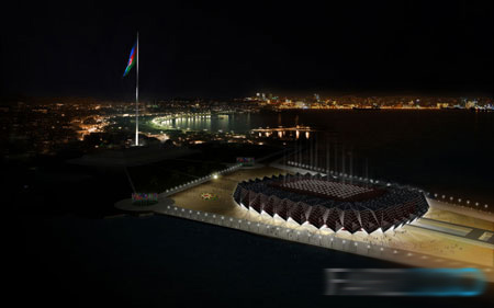 欧洲电视网歌唱大赛每年举行一次,而"水晶厅"就坐落在市中心的三角地带,旁边即是里海。水晶厅必须在8个月的时间里建造完成,它不仅仅是一座音乐厅,还是多功能的室内赛场。而通常这样规模的场馆需要4到5年时间才能设计建造完毕。